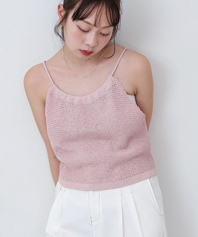 IVORY H:162 着用サイズ:FREE BEIGE H:162 着用サイズ:FREE PINK H:162 着用サイズ:FREE BLACK H:162 着用サイズ:FREE 表情のあるランダムリブ素材が、1枚でニュアンスをプラスしてくれるタンクトップ。 身体に程よくフィットする細身のシルエットで、インナー使いはもちろん、1枚で着てもサマになる万能アイテムです。肩紐の幅もしっかりあるので、下着のストラップが見えにくく、安心して着られるのも嬉しいポイント。 ジャケットやシャツのインナーとして重ね着するだけで、季節を問わず活躍。ベーシックなカラー展開で、色違いで揃えたくなる1枚です。