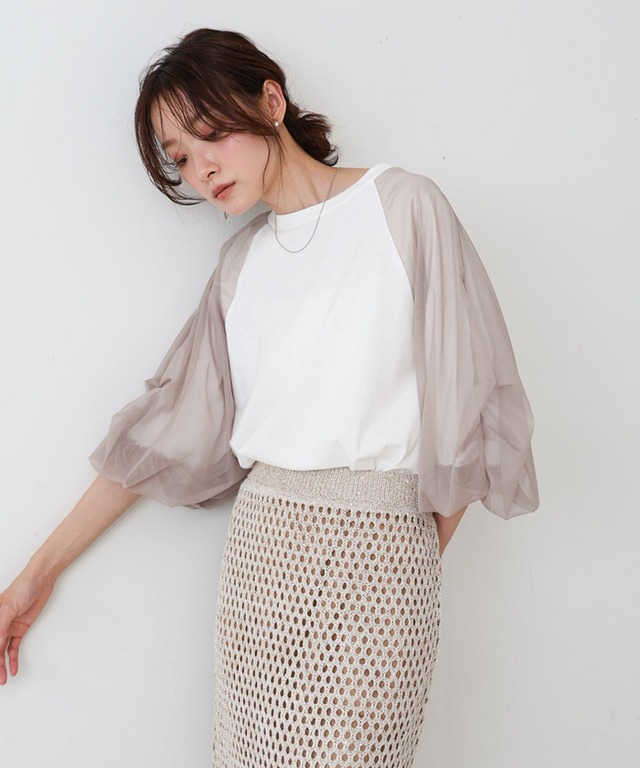チュールバルーンスリーブシャツ