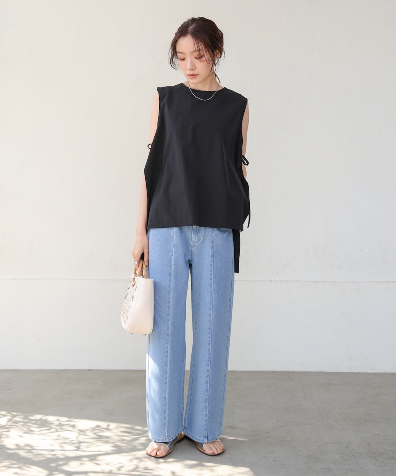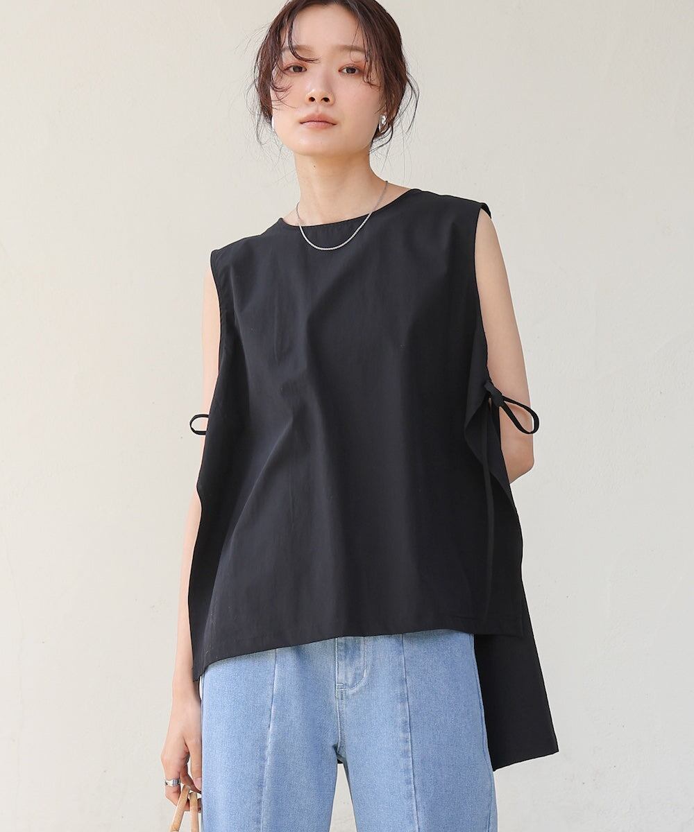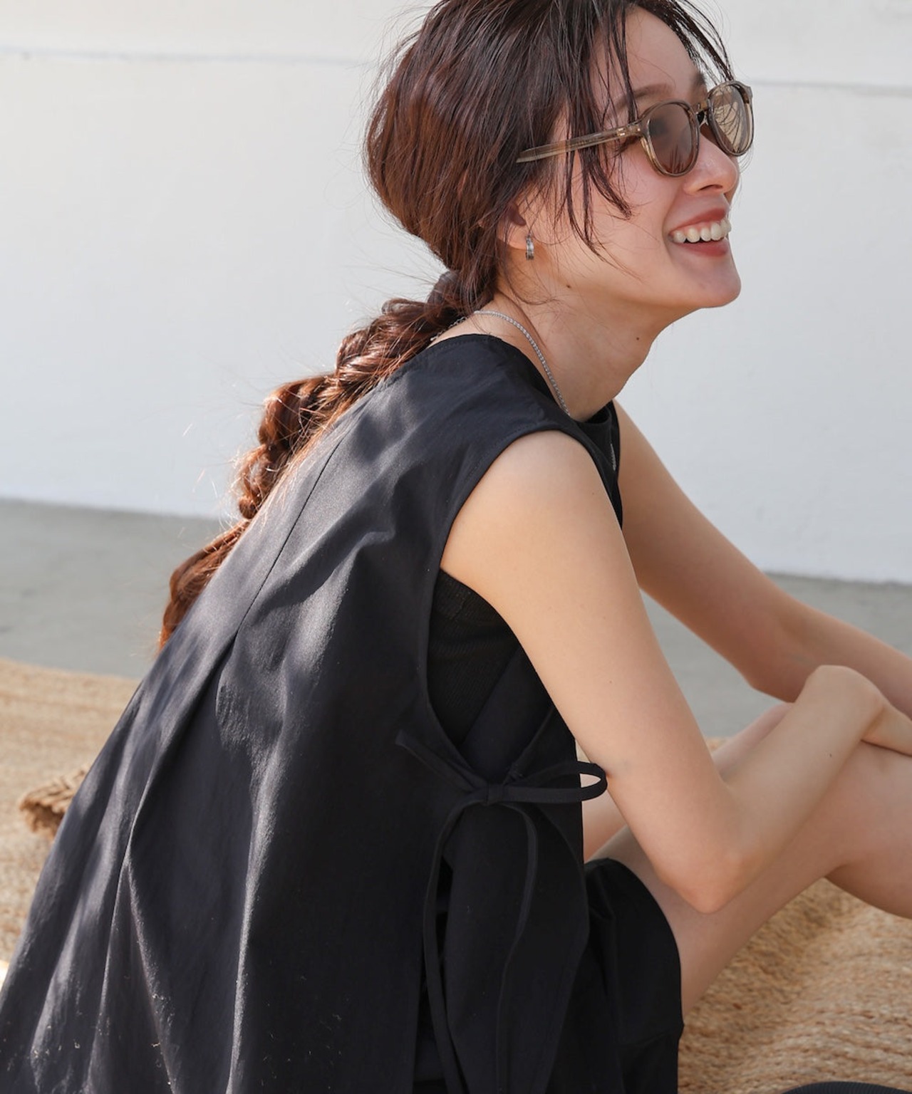 サイドのリボンを結ぶとウエスト周りがきゅっと細見えし、前後で丈感も違うので体型カバーも◎