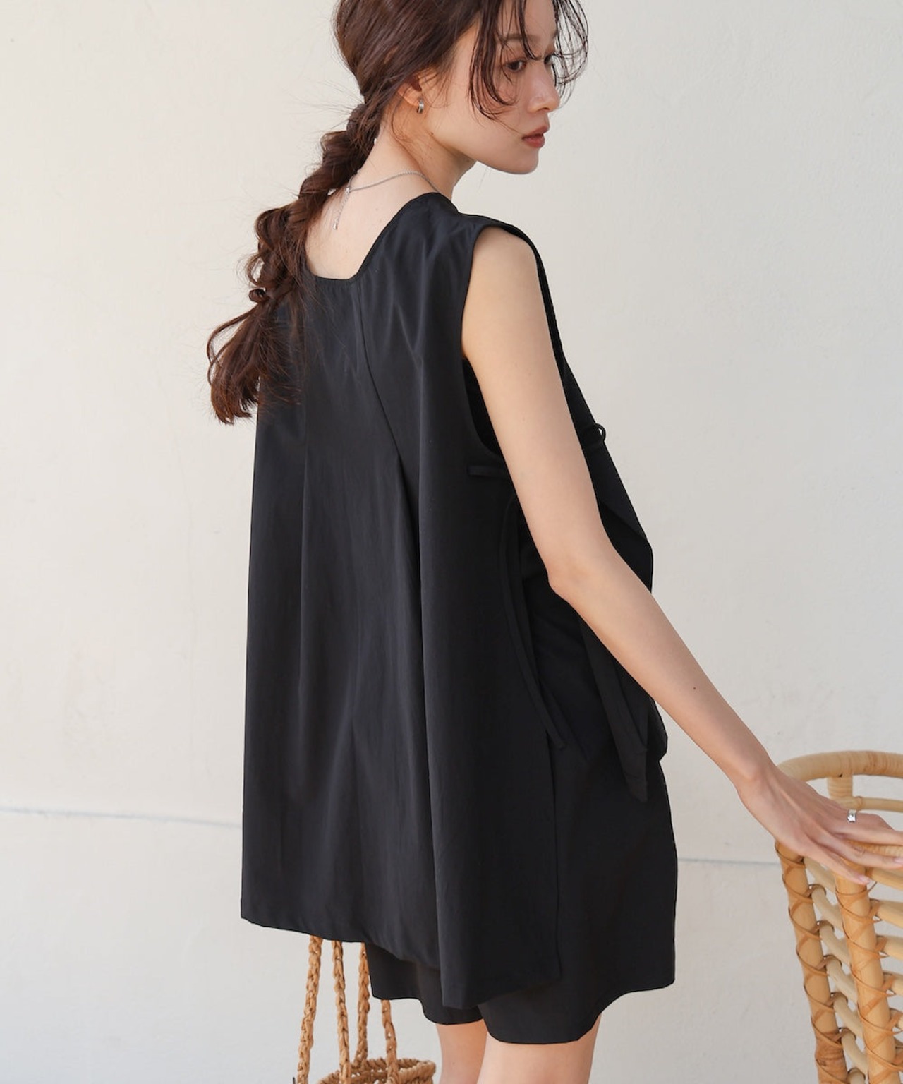 背面のタックなど普段使いもできるデザインなのでこれからのシーズンに持っておきたいアイテムです。普段使いとして、キャミソールの上に着ても◎