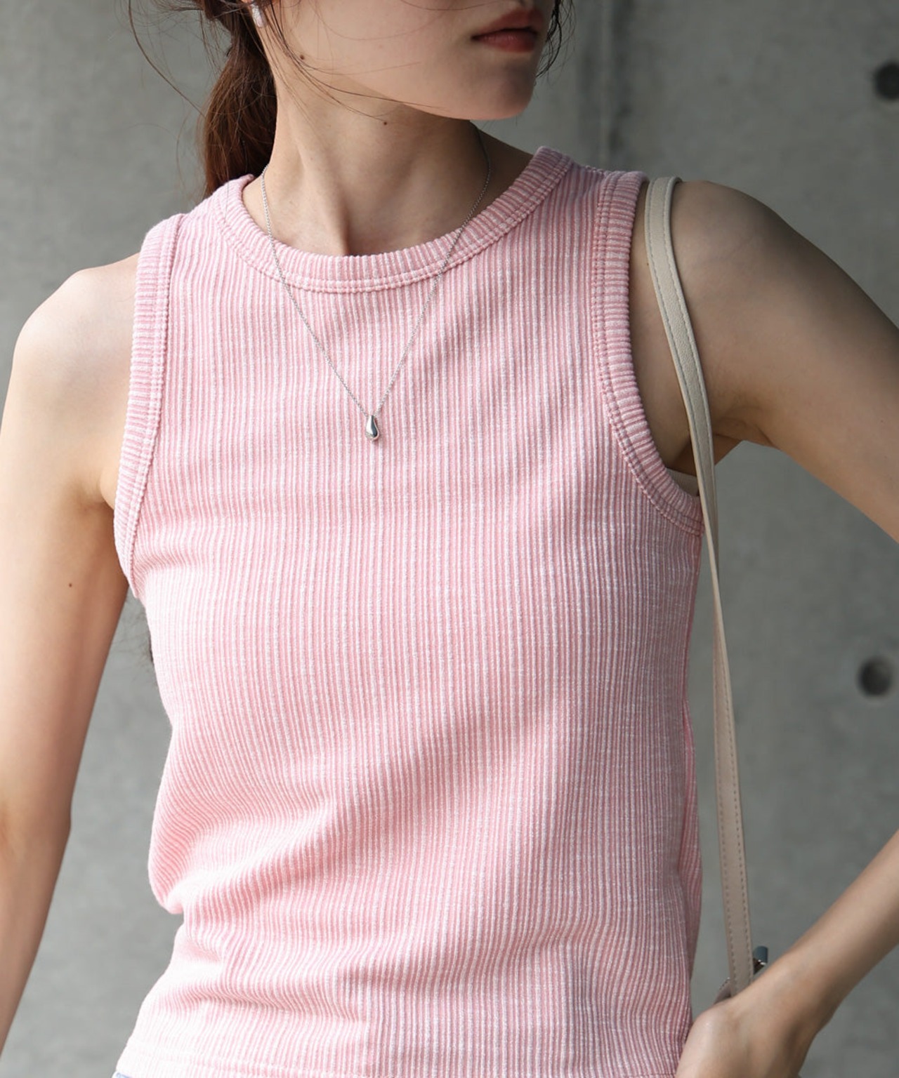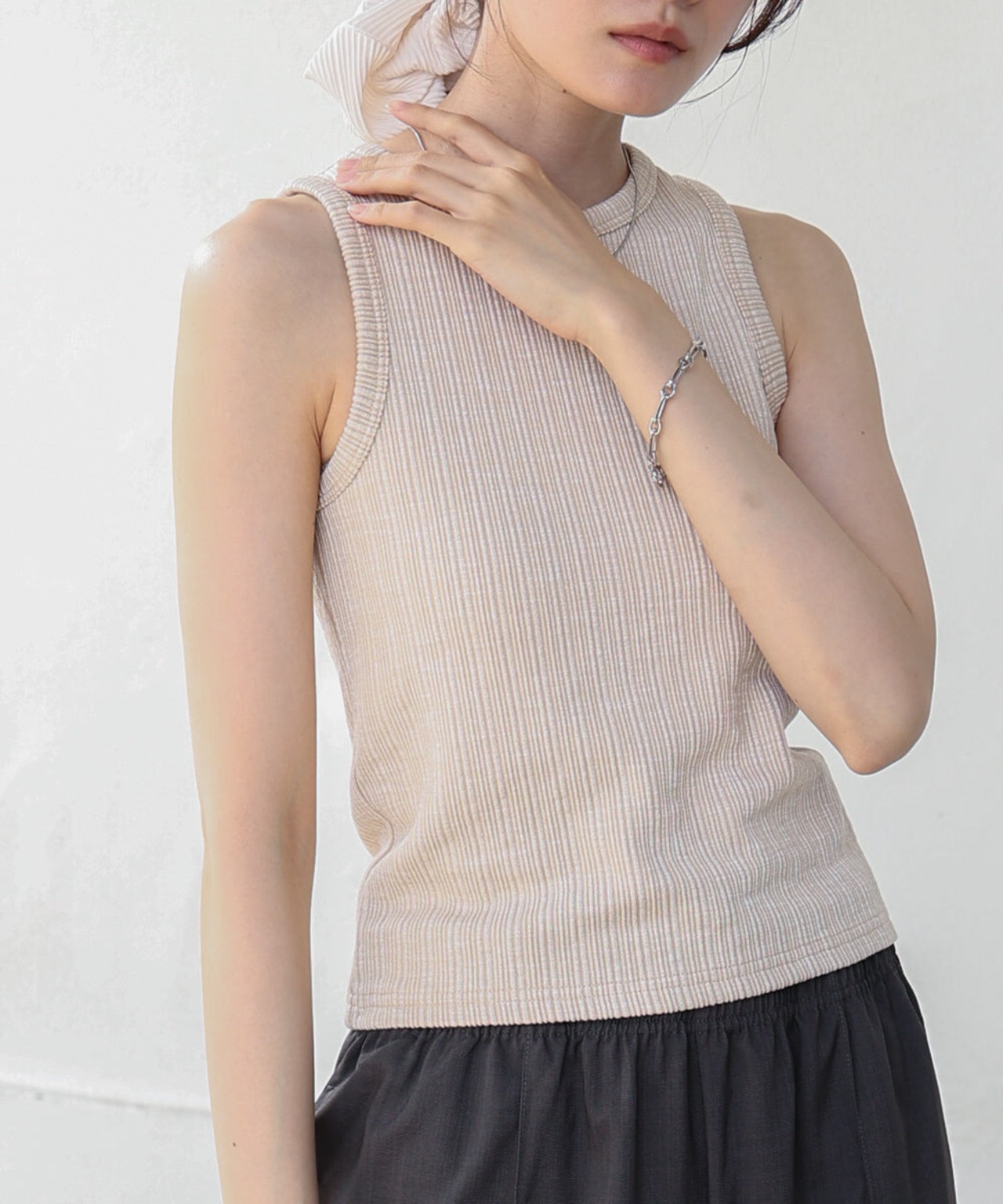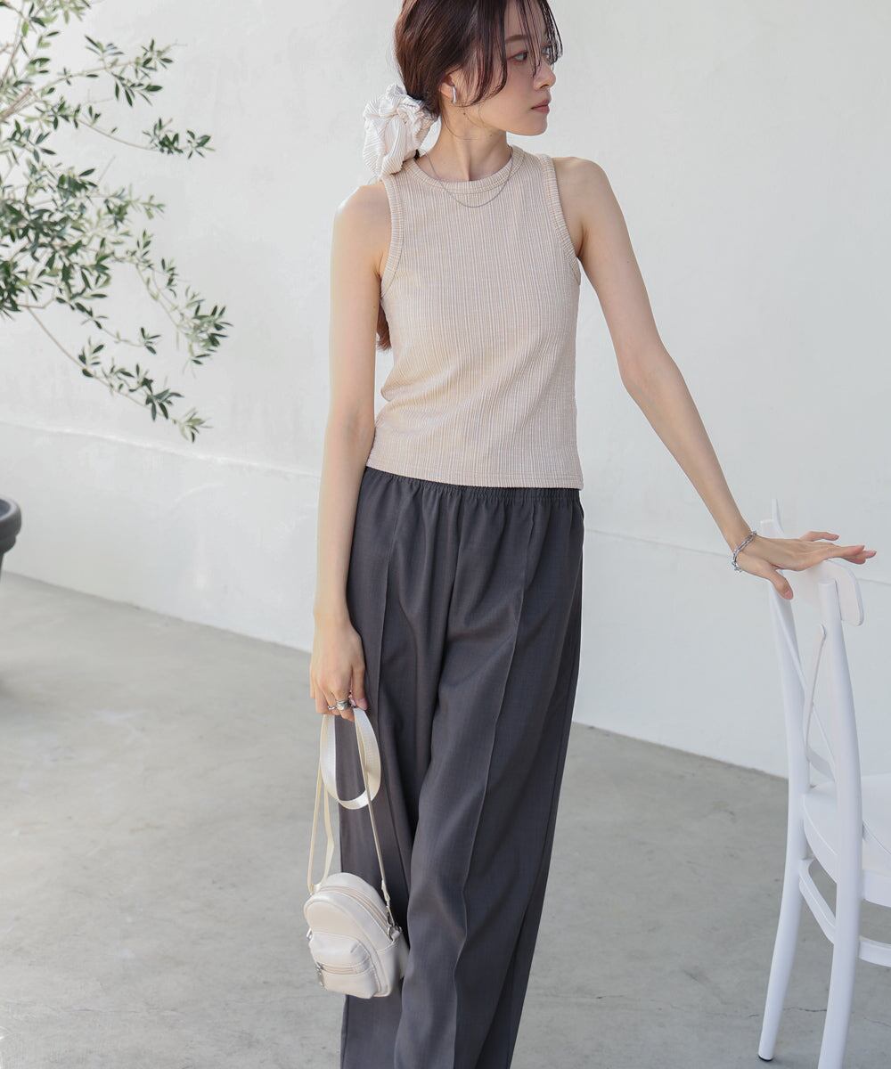 表情のあるランダムリブ素材が、1枚でニュアンスをプラスしてくれるタンクトップ。