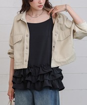 夏は1枚で涼しく、春?秋はトップスやカーディガン、冬はニットの下に重ねてレイヤードコーデがおすすめ。シンプルなコーデにも1枚追加するだけで、ワンランク上のコーデに仕上がります。カジュアルなデニムコーデに合わせるとガーリー要素もプラスに。