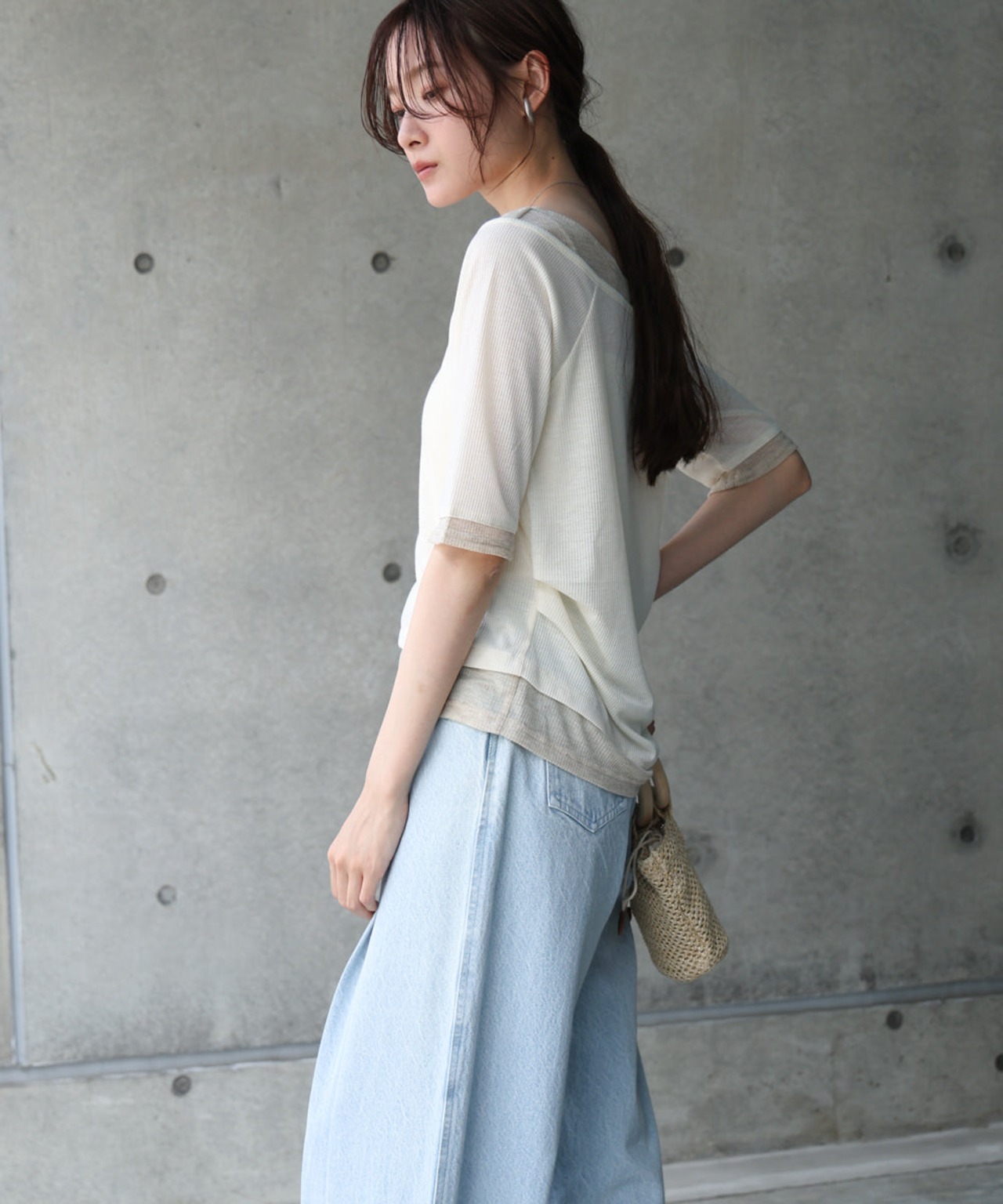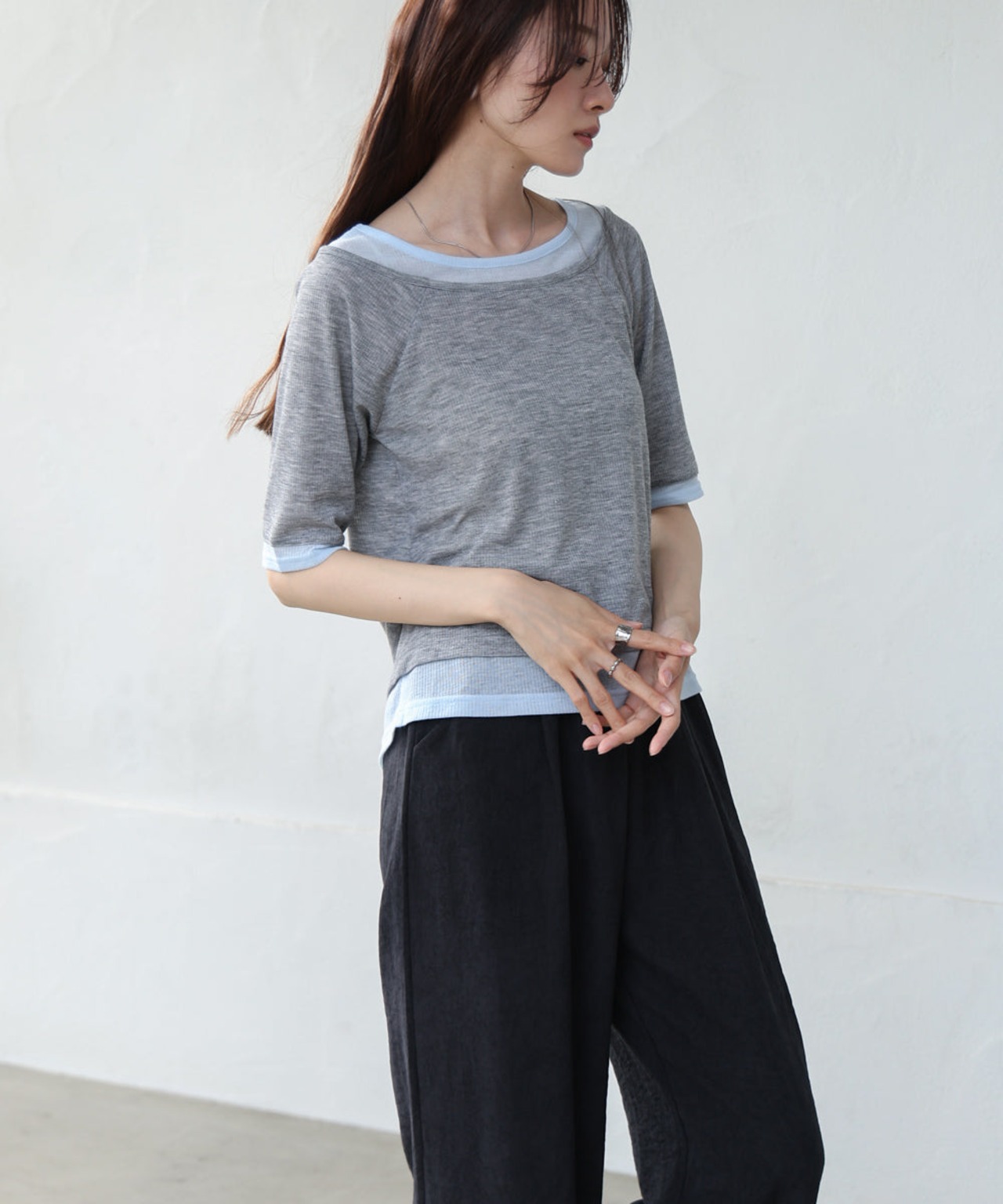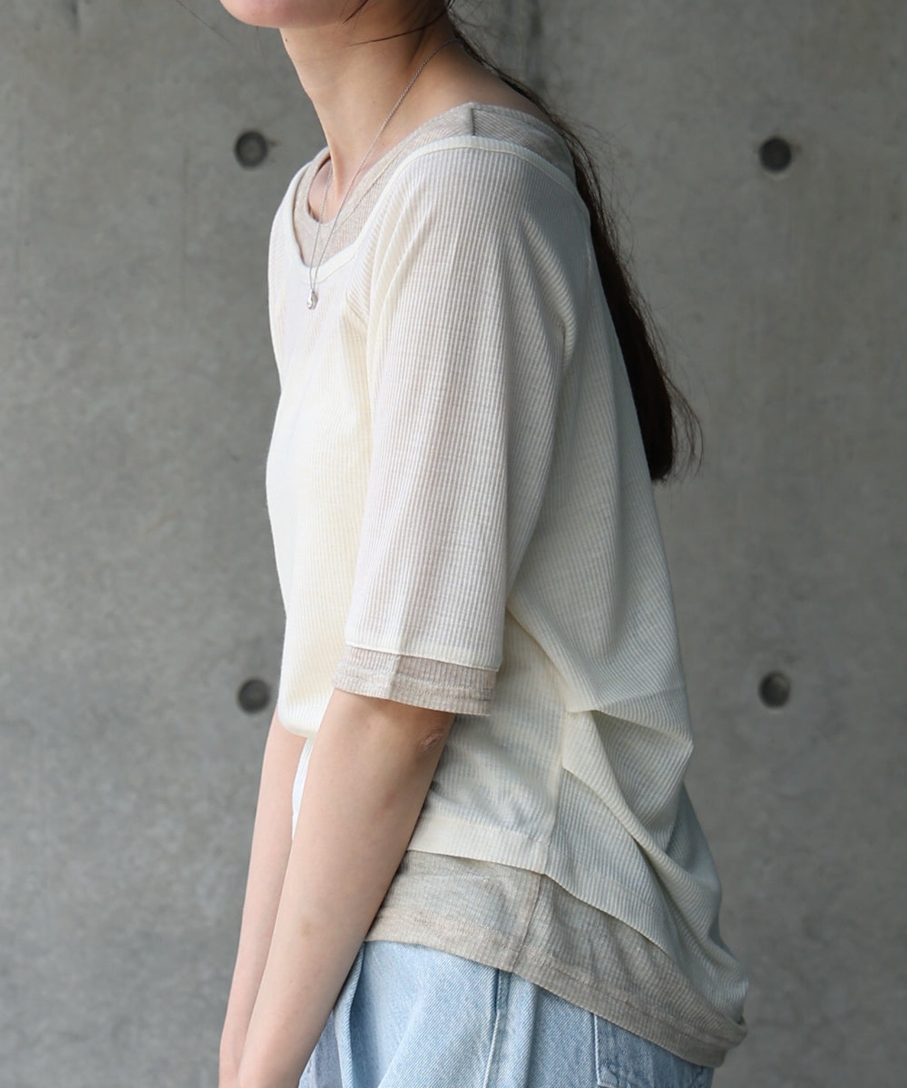 レイヤードオフショル風カットトップス