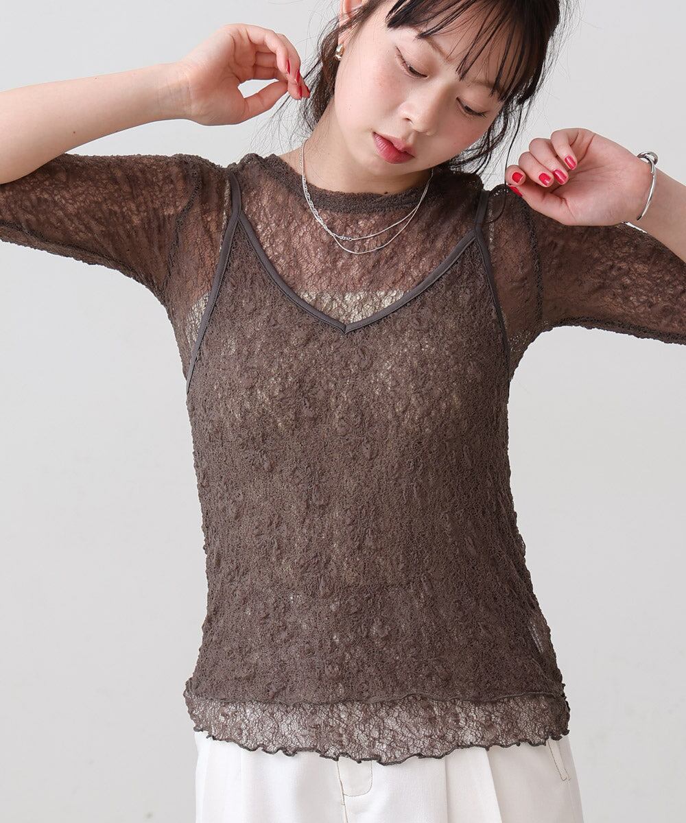 トレンドの重ね着スタイルが叶う、透け感のあるレーストップスが登場!