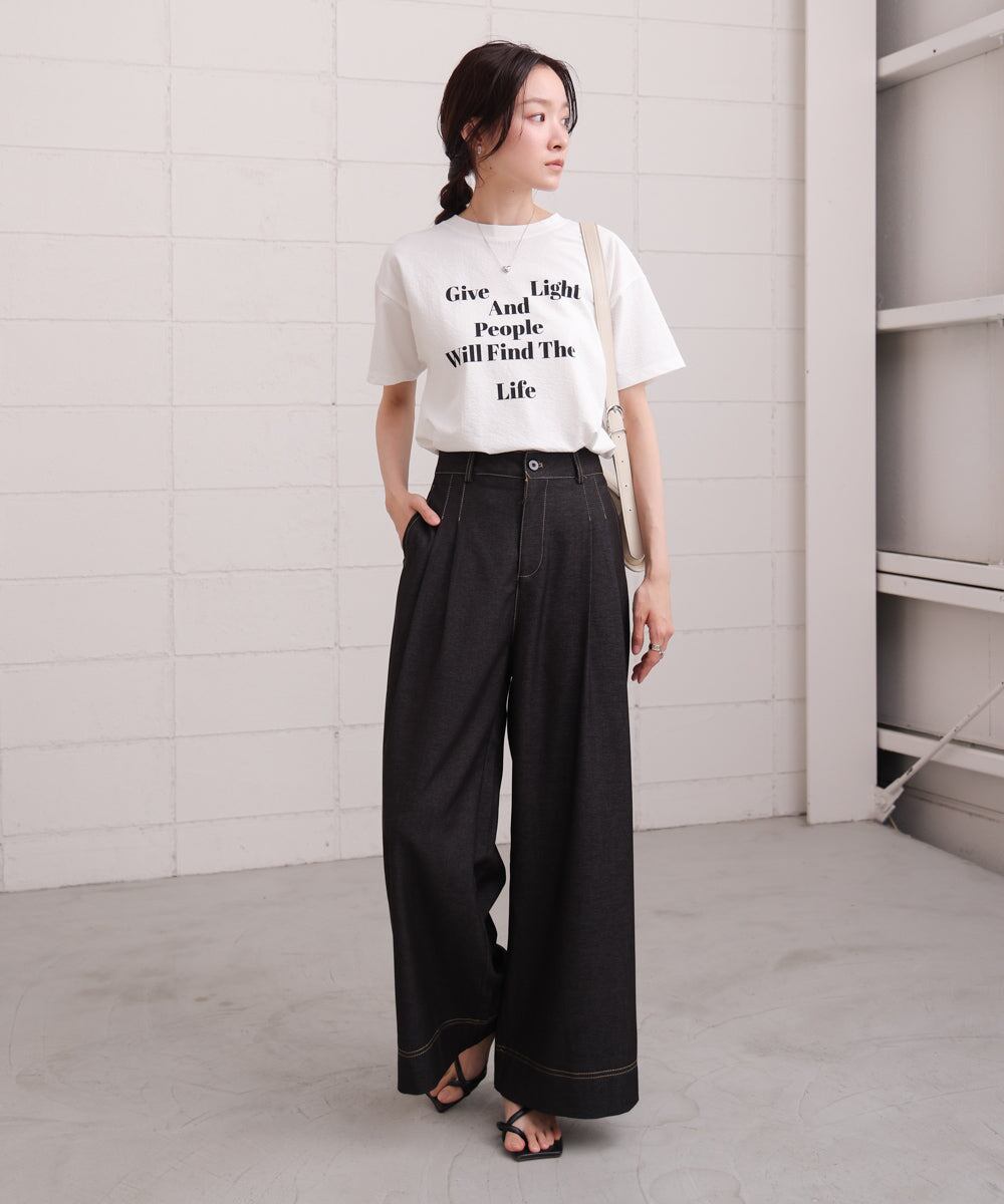 ざっくりとしたベストを合わせたり、シンプルなジャケット、シャツなどのインナーとしてロゴをアクセントに着用するのもおすすめ。