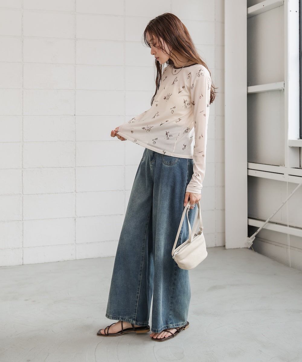 リボンを後ろにしてハイウエストデニムなどを合わせるとガーリー過ぎず、カジュアルな印象でご着用いただけます。
