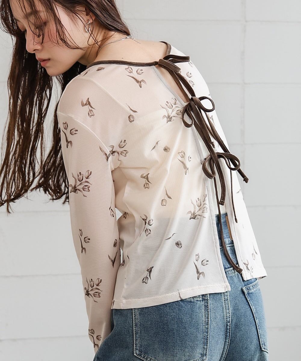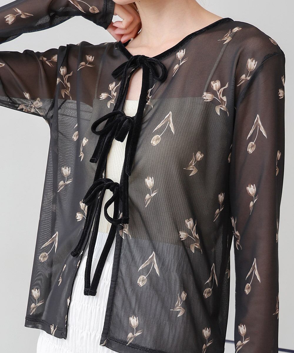 前後2WAY花柄リボンカーディガン