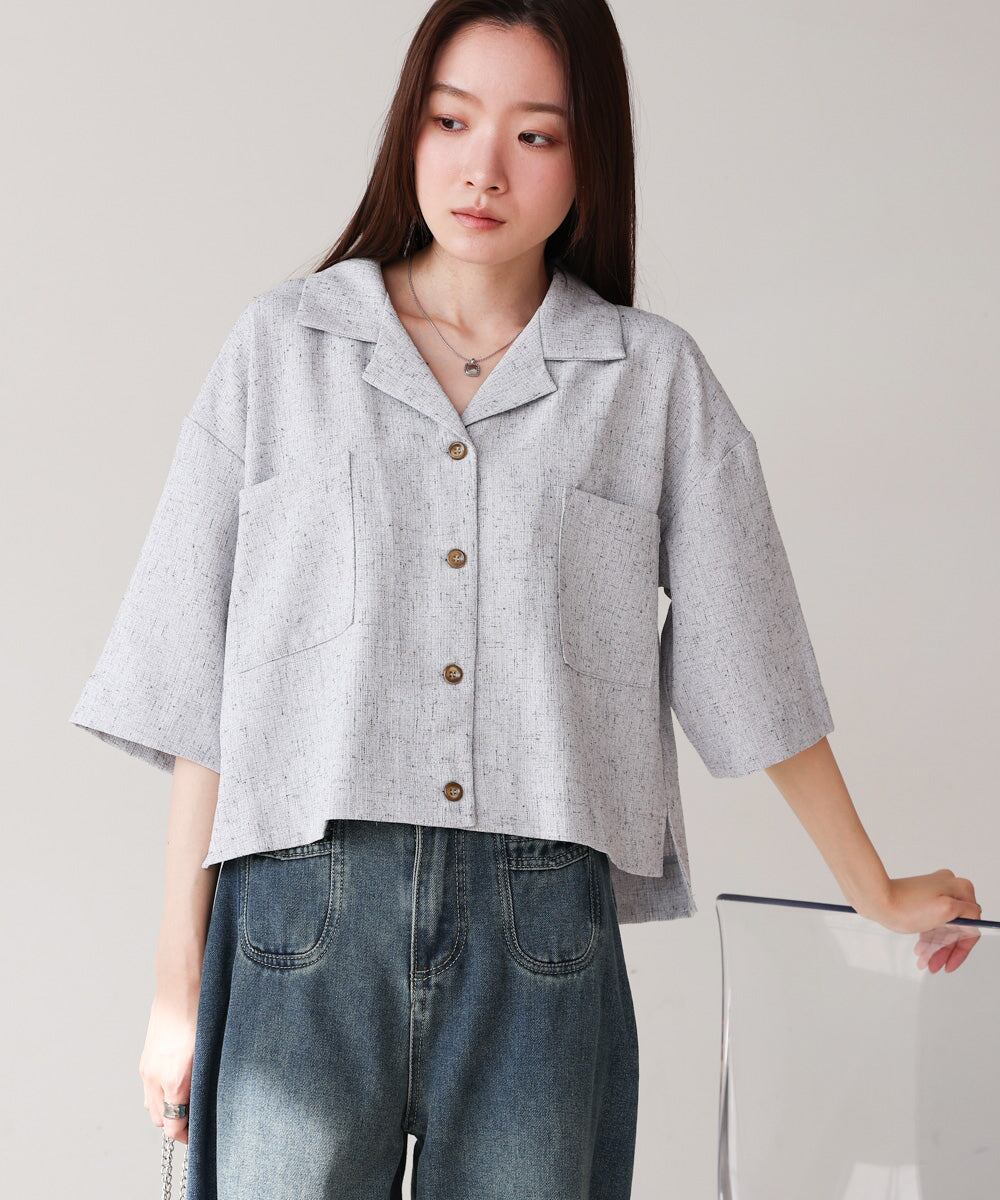 オープンカラーハーフスリーブシャツ