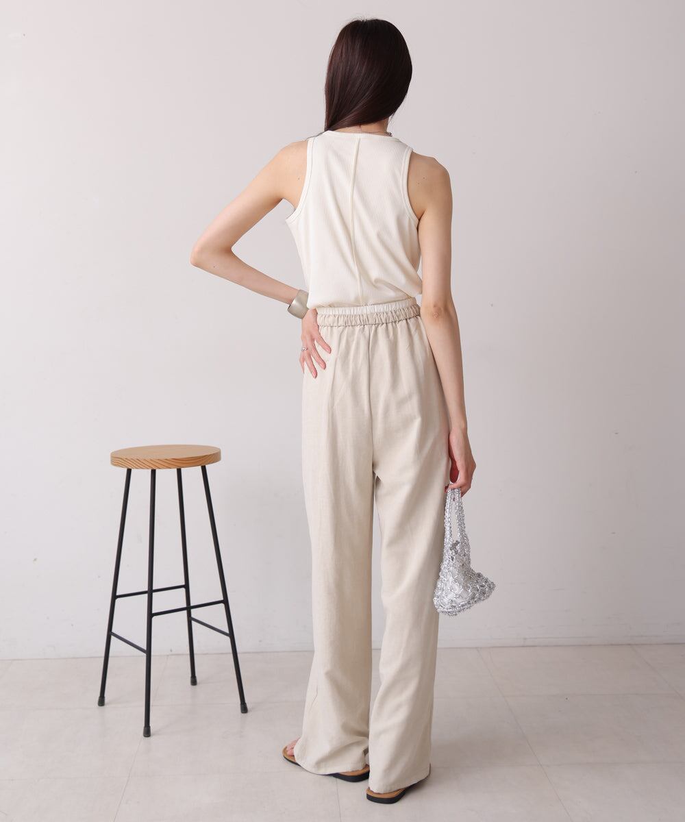 伸縮性のあるリブニット素材が程よくフィットして快適な着心地です。