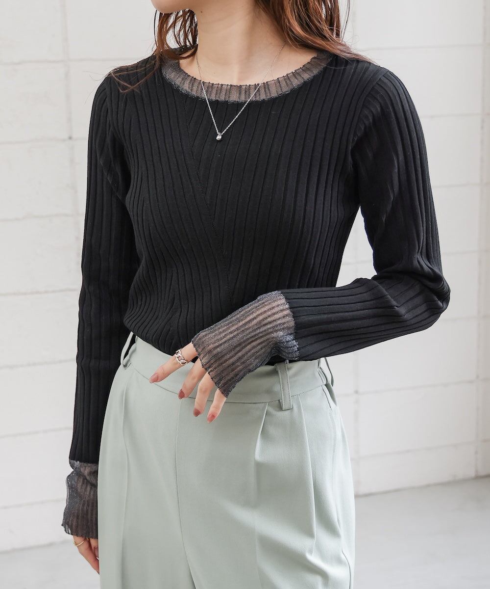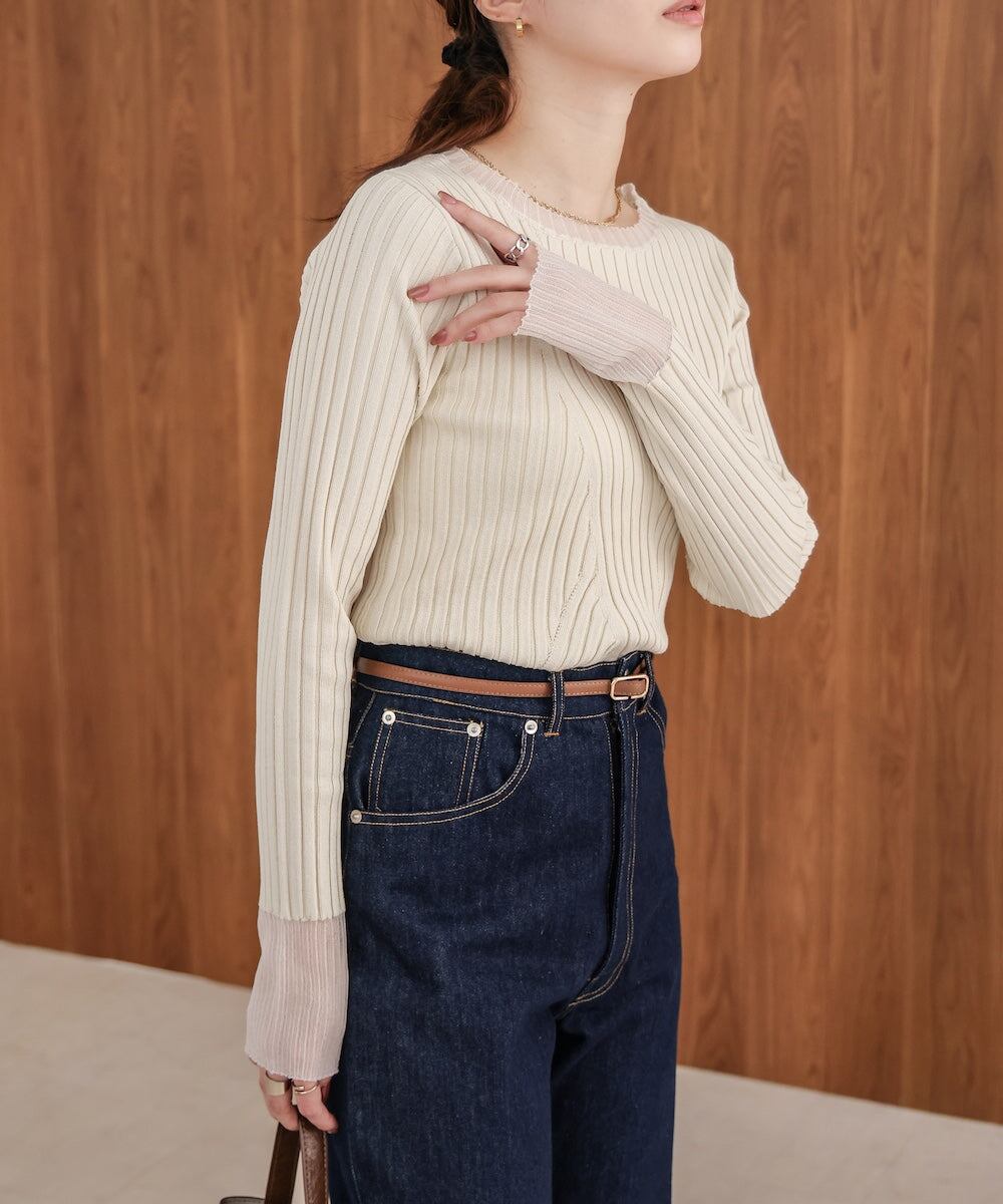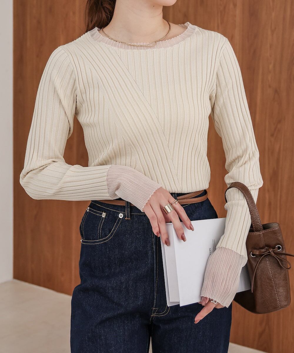部分的に施された透け感が魅力的なシアー使いリブニットトップスが2025年SSバージョンにて登場!