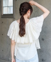ふんわりとした胸元のフリルデザインと、身頃もタックの入ったシルエットなのでパンツやロングスカートに合わせると爽やかにまとまります。
