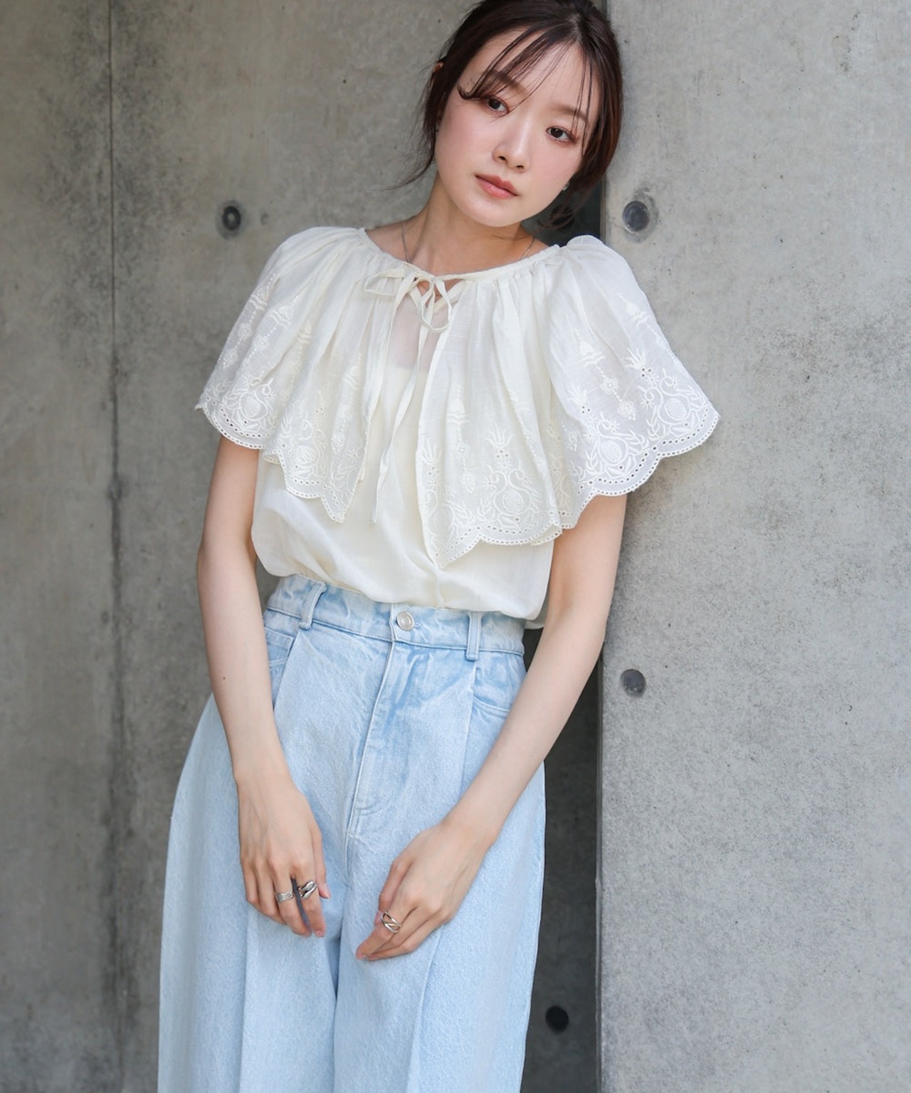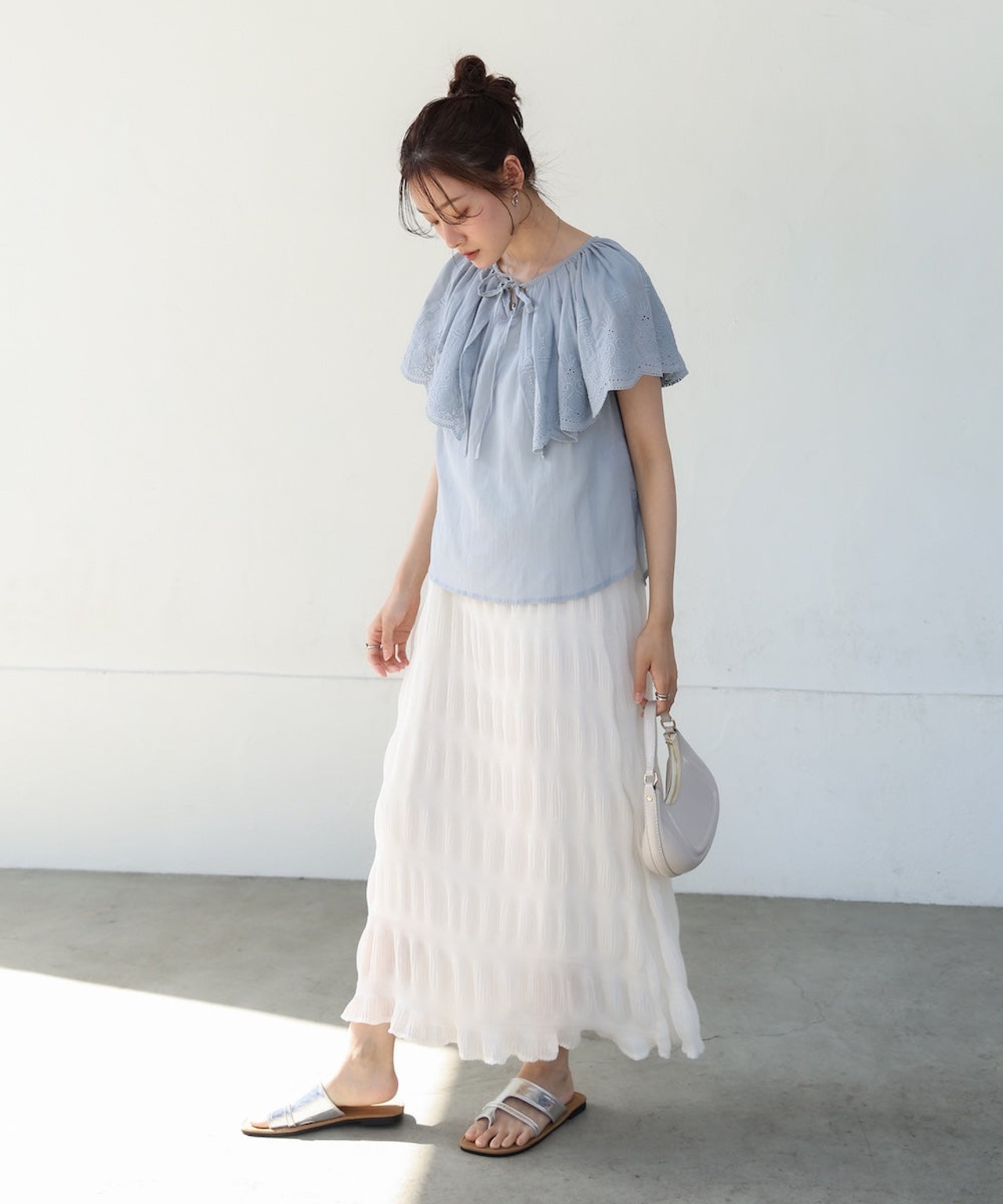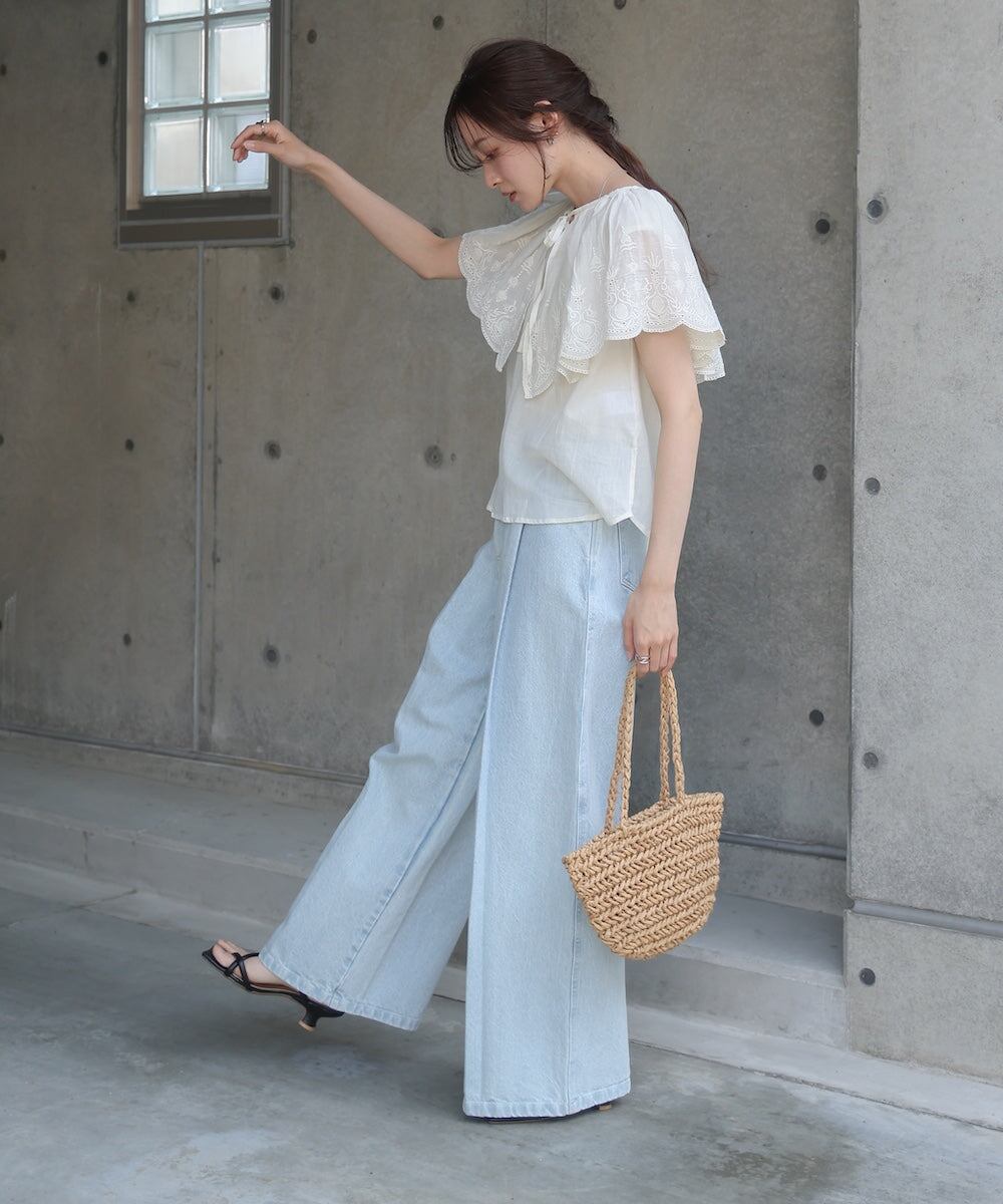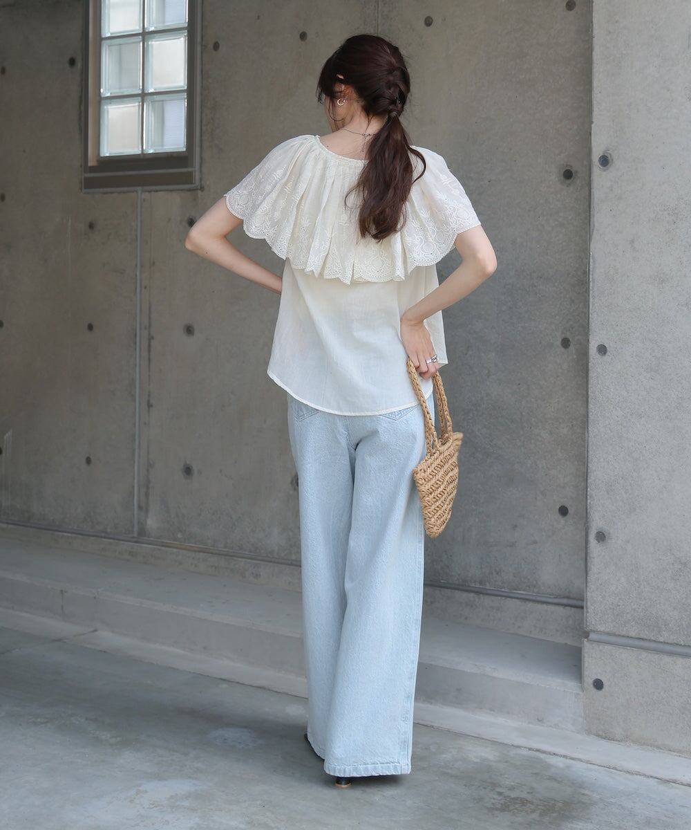 フリル部分にはパンチングレースが施されており、繊細でフェミニンな印象を出してくれます。