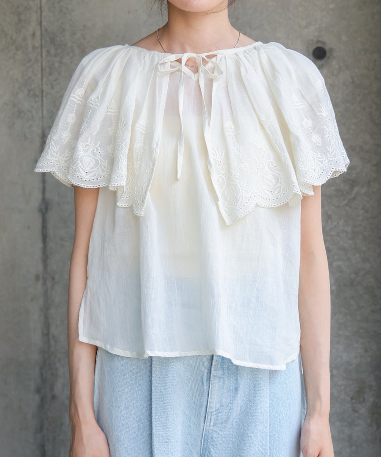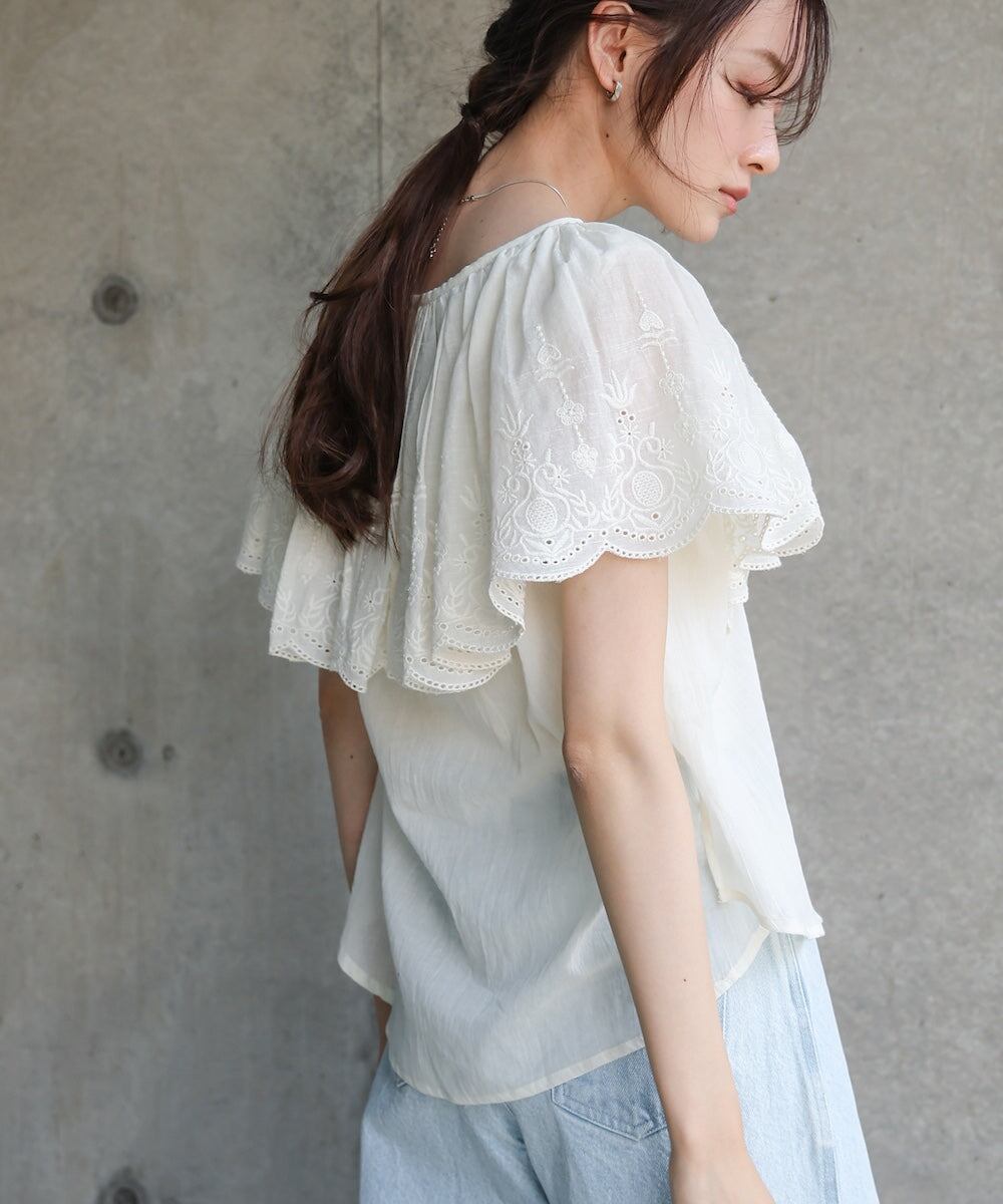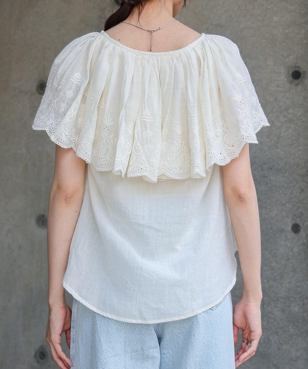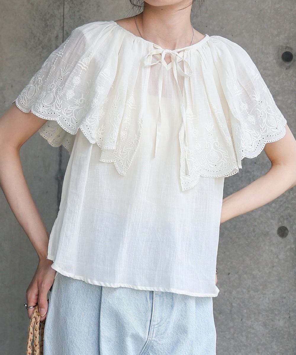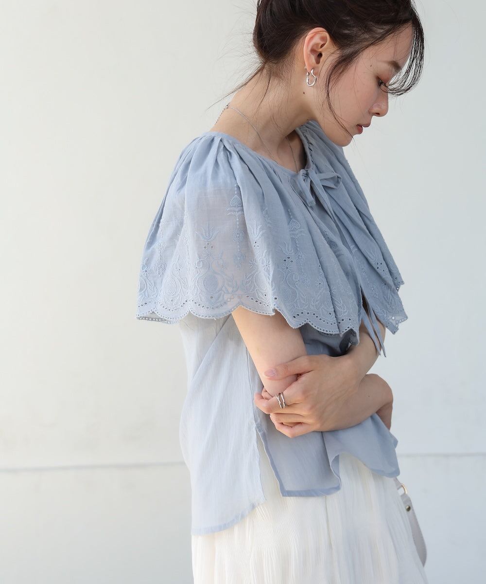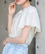 コットンボイルパンチングレースブラウス