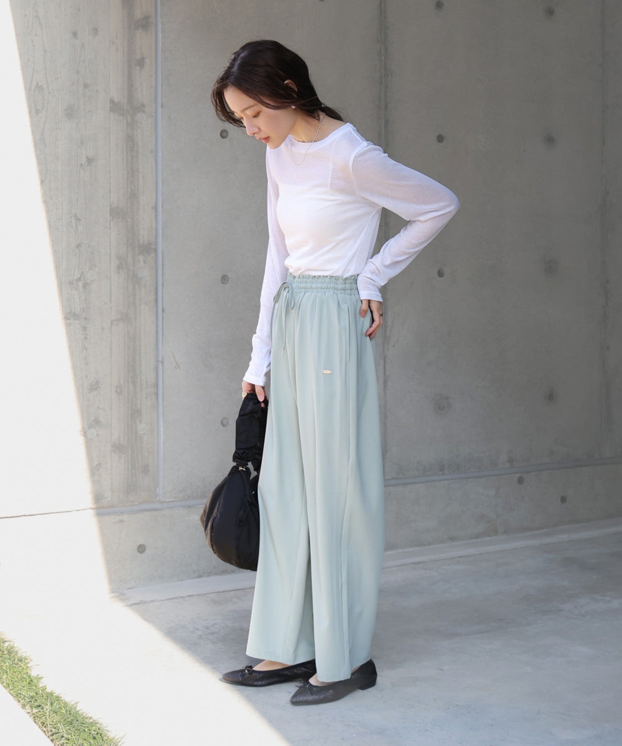 コンパクトなシルエットがトレンドなので、ワイドパンツなどと合わせるのがおすすめです。