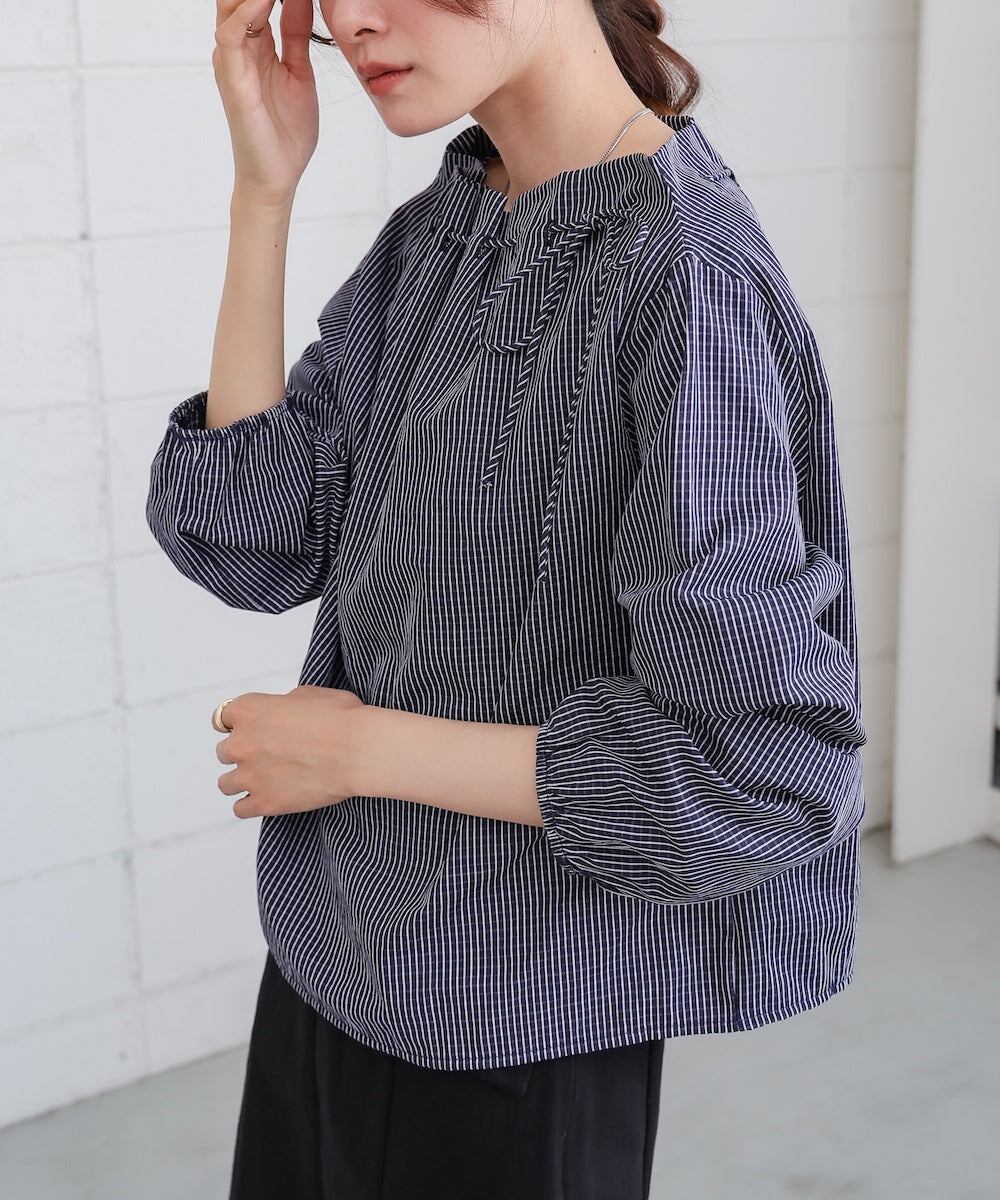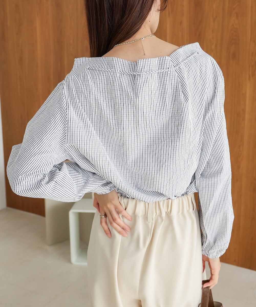 ストライプロープネックブラウス